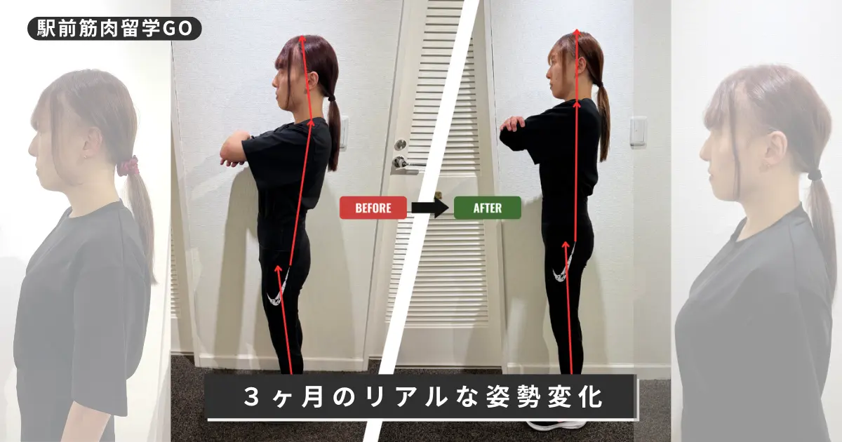 この記事では、駅前筋肉留学GOに3ヶ月間通って「姿勢改善」にチャレンジした私の